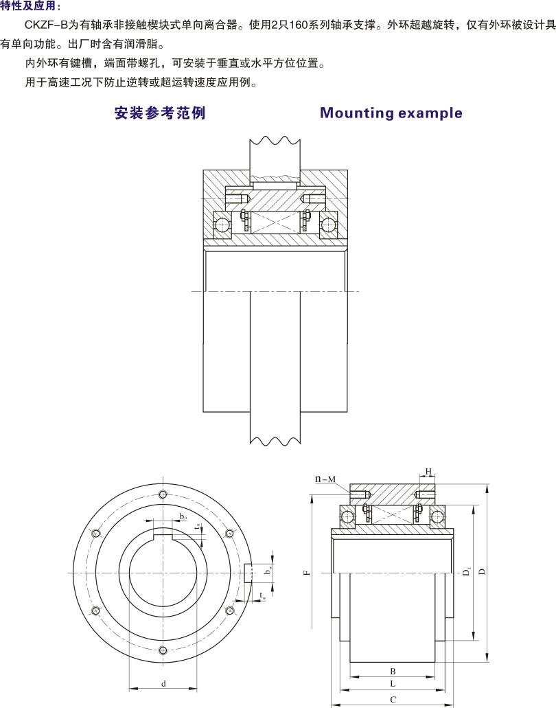 CKZF-B為有軸承非接觸楔塊式單向離合器。