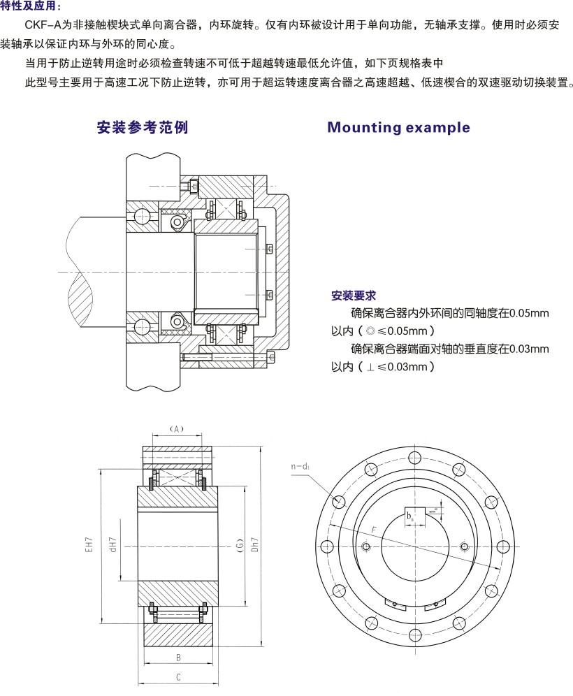 CKF-A為非接觸楔塊式單向離合器,內環旋轉。