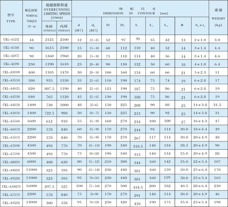 CKL-A系列為帶半聯軸器(彈性套柱銷聯軸器)的楔塊式單向離合器