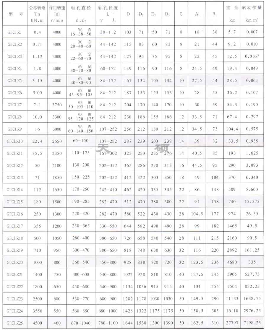 4. 鼓形齒聯(lián)軸器軸孔型式采用Y、Z1和J1組合,滿(mǎn)足多種軸孔連接需要。 鼓形齒聯(lián)軸器產(chǎn)品包括GICL、GⅡCL,GICLZ,GⅡCLZ和NGCL五種型式鼓形齒聯(lián)軸器