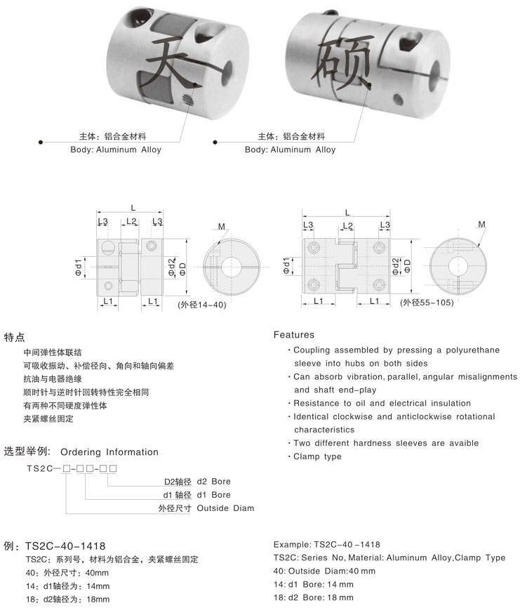 TS2C夾緊梅花聯軸器,精密聯軸器,天碩聯軸器官網,