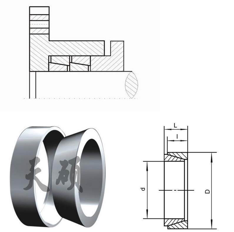 特性 :Z1型脹緊套由內(nèi)外錐環(huán)組成。結(jié)構(gòu)緊湊輕巧,適用于安裝空間較小的場(chǎng)合。可以代替各種鍵聯(lián)結(jié)或過(guò)盈配合聯(lián)結(jié)使用。為傳遞較大載荷可采用多對(duì)脹套,單側(cè)壓緊不超過(guò)4對(duì)環(huán),雙側(cè)壓緊可達(dá)8對(duì)環(huán),且對(duì)中性好。